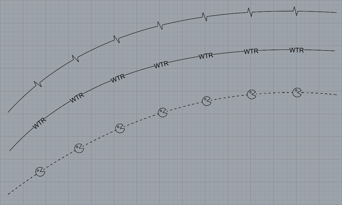 Tato funkce je v současné době (září 2025) ve velice rané fázi vývoje. Základní ovládání je nyní zpřístupněno pomocí příkazu TestLinetypeWithShapes, ve kterém můžete pojmenovat nový typ čáry, definovat rozestupy mezi tvary a určit, zda má být v místech, kde se tvary vyskytují, vytvořena mezera. Poté můžete vybrat křivky a/nebo text, kterými definujete tvary. Jakmile máte nový typ čáry, přiřaďte tento typ čáry ke křivce, aby se zobrazil.